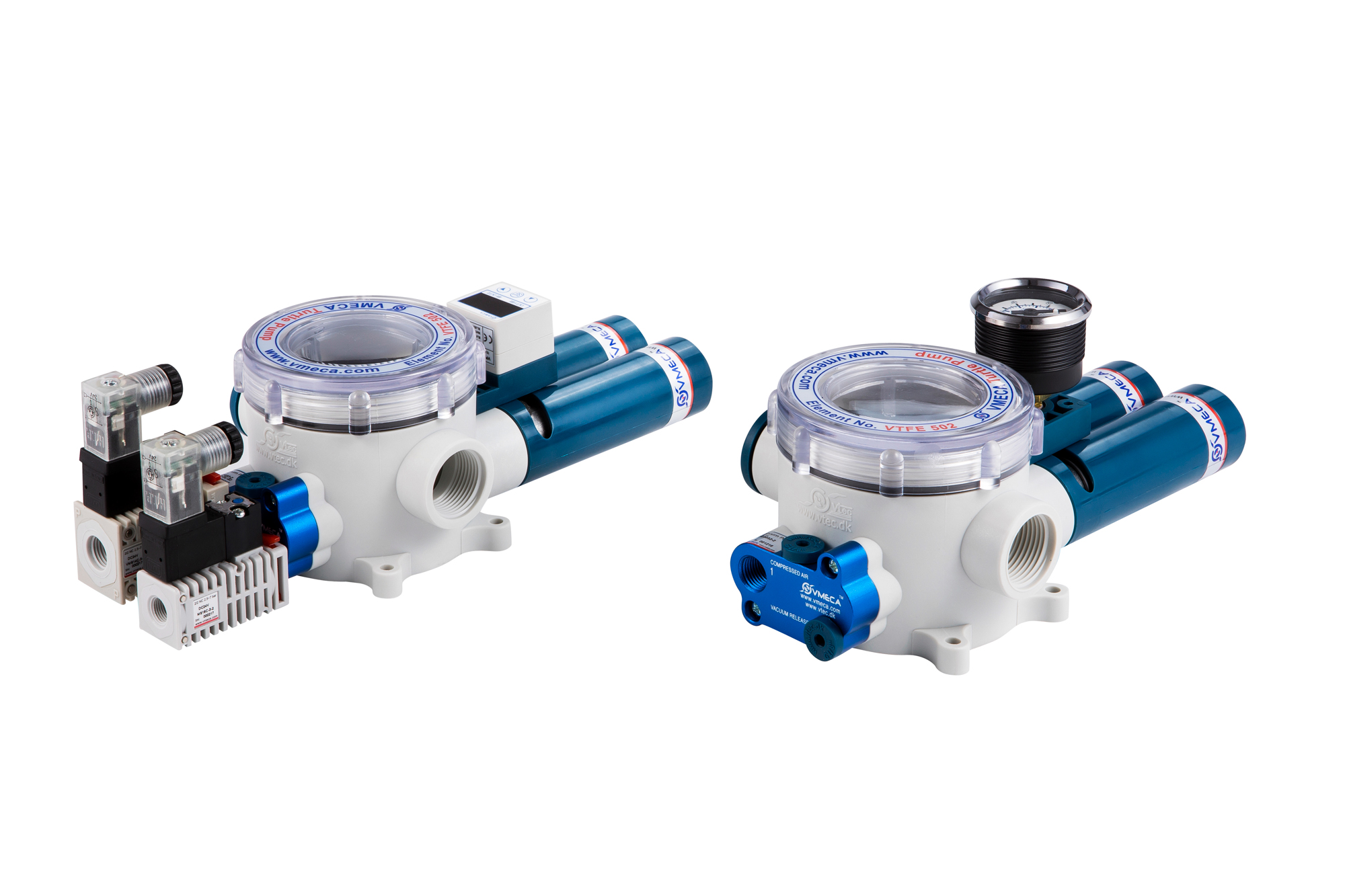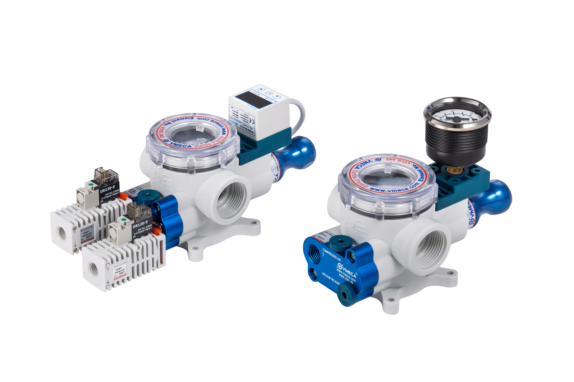 As Bombas de Vácuo Turtle VMECA oferecem várias vantagens: durabilidade excepcional (como uma tartaruga), cartucho de vácuo de três estágios integrado para vácuo mais estável, filtro plissado de alta capacidade de retenção de sujeira, alta confiabilidade operacional mesmo com pressões de ar comprimido flutuantes, função de sopro disponível e design patenteado. A versão Eco Turtle adiciona economia de ar de até 90%.
